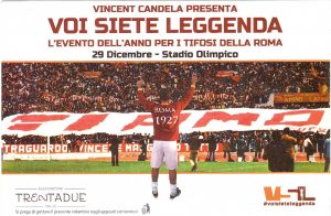 Doppia pagina dell'edizione cartacea del quotidiano Il Corriere dello Sport per l'evento Voi Siete Leggenda, organizzato dall'Associzione Trentadue Onlus dell'ex giocatore Vincent Candela e del quale la Nuova Fondazione Bambino Gesù onlus è partner, che martedì 29 dicembre vedrà scendere in campo all'Olimpico la maggior parte delle vecchie glorie della squadra della Roma.