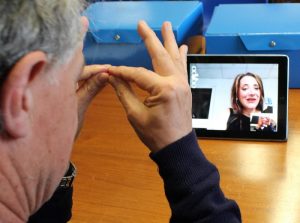 Tramite un apposito tablet si effettua una videochiamata (con tecnologia cavo-wired o wireless internet) ad un video-centro nel quale operano interpreti Lis che facilitano la comunicazione tra sordo e operatore di sportello. In questo modo, le richieste della persona sorda vengono tradotte in tempo reale dalla Lingua dei Segni Italiana a quella verbale e viceversa, traducendo in Lis le indicazioni dell'operatore. Servizio di traduzione e tablet sono stati donati da Video Assistenza Mobile e Rotary Club Casalpalocco di Roma alla Fondazione Bambino Gesù Onlus.