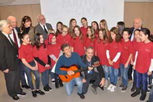 Il presidente della Nazionale Cantanti, Luca Barbarossa, ha voluto portare i saluti di persona e ha incontrato i rappresentanti dell'Ospedale Pediatrico e della sua Fondazione. La cornice non poteva che essere musicale e per l'occasione 20 ragazzi del coro della scuola Virgilio di Roma hanno intonato alcune canzoni di Natale.