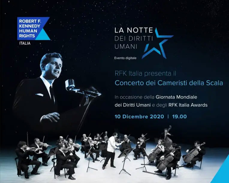 Durante l'evento "La notte dei diritti umani" ha avuto luogo la cerimonia degli RFK Human Rights Italia Awards 2020 che ha premiato la Fondazione Bambino Gesù con la Presidente Mariella Enoc, la Croce Rossa Italiana - Comitato di Firenze rappresentata dal Presidente Lorenzo Andreoni e la Caritas Ambrosiana con il Direttore Luciano Gualzetti per l'impegno profuso a sostegno dei diritti umani in questo anno così difficile.