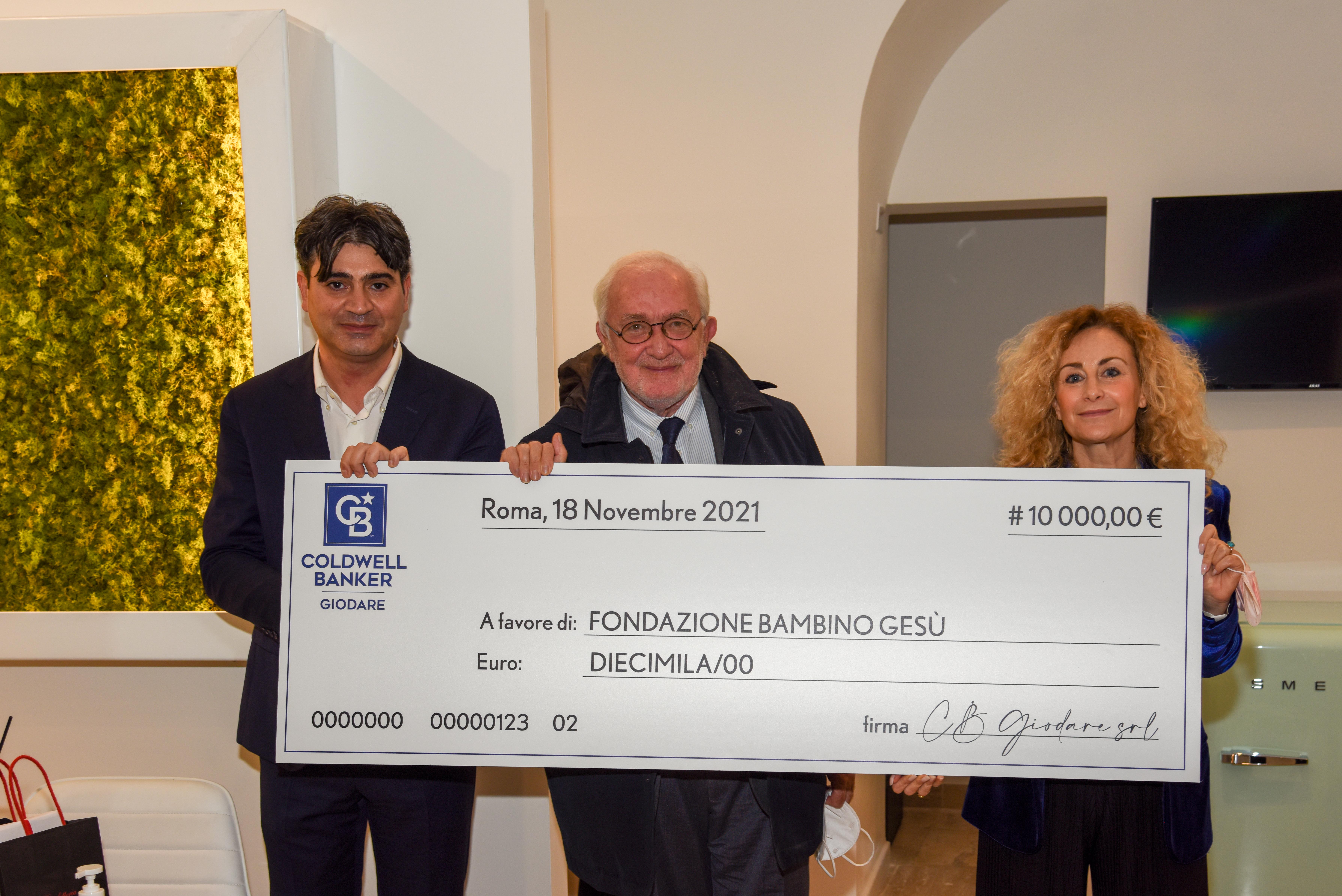 Giovedì 18 novembre, l’agenzia Coldwell Banker Giodare, rappresentata dai broker titolari Federica Bartolelli e Giovanni Gargano, ha consegnato a Francesco Avallone, Segretario generale della Fondazione Bambino Gesù Onlus, un assegno di 10.000 Euro a sostegno della Ricerca scientifica dedicata al paziente pediatrico con scompenso cardiaco.