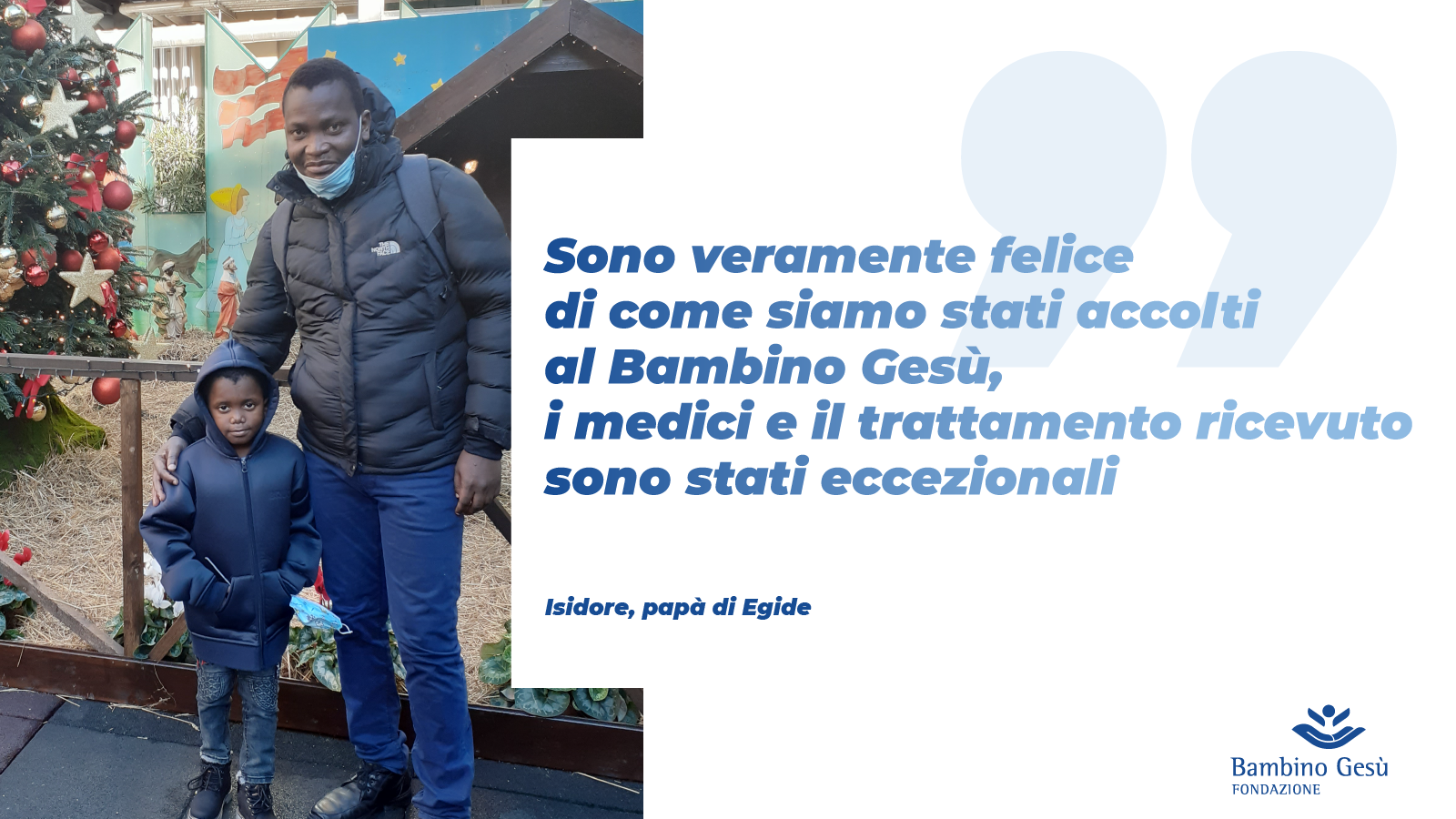 Ma nel frattempo è arrivato il Natale e in questo periodo ogni desiderio può trasformarsi in realtà, in un dono inaspettato. E quest’anno il dono di Natale per Egide sarà la possibilità di vivere in Italia, dove potrà frequentare la scuola e iniziare un progetto di vita che gli permetterà di curarsi e organizzare il suo futuro, come tutti i nostri ragazzi.
