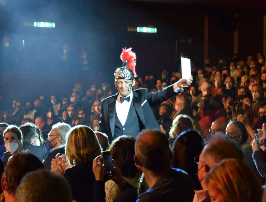 "Benvenuti a questa serata magica", ha esordito la voce fuori campo dello showman siciliano, entrato in scena dalla platea con un casco da centurione in omaggio a Roma, da 30 anni la sua città. "Questo libro è una lezione di vita", ha detto Fiorello tenendo in mano il volume, in vendita con lo stesso scopo solidale, 'Posti in piedi alla 201' scritto da una delle più grandi amiche di Fiorello e di sua moglie Susanna Biondo, Diletta del Bono - scomparsa nel 2020 – con la collaborazione di Chiara Piermattei.