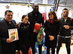 Deontay Wilder, campione del mondo dei pesi massimi WBC, ha inaugurato il suo tour a Roma nella Ludoteca del Bambino Gesù, accompagnato dal Presidente WBC, dal Capitano della nazionale di pugilato, Clemente Russo e dal Presidente della Federazione Pugilistica Italiana, Vittorio Lai.