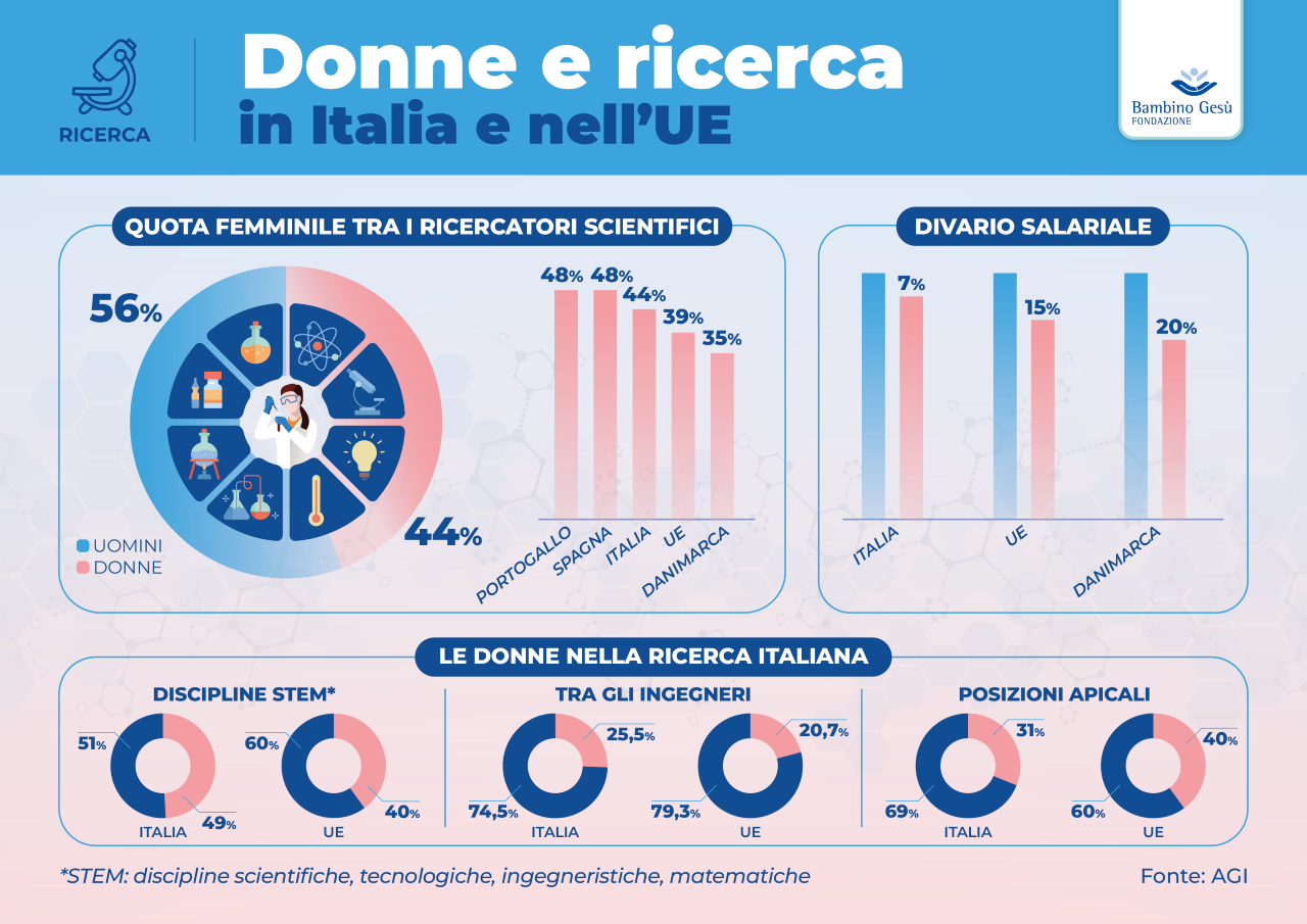 Elsevier NV, uno dei più importanti editori scientifici del mondo con oltre 3.000 pubblicazioni in ogni ambito medico e scientifico, nel report “Gender in research”* dimostra che nella ricerca scientifica l'Italia è vicina alla parità di genere, comunque ben posizionata sopra la media europea: oltre 4 ricercatori su 10 sono donne, un dato che corrisponde al 44 % del totale.