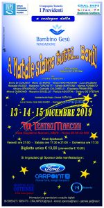 La Compagnia Teatrale “I Previdenti”, composta da dipendenti dell’Istituto Nazionale per la Previdenza Sociale, nei giorni 13, 14 e 15 dicembre metterà in scena al Teatro Marconi, “A Natale siamo tutti… BONI!" a sostegno della Fondazione Bambino Gesù.