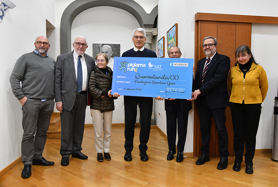 Il Prof. Francesco Schitulli, presidente della LILT, ha consegnato al Prof. Tiziano Onesti – presidente dell’Ospedale Pediatrico Bambino Gesù e dell’omonima Fondazione - la cifra raccolta a Roma ovvero 40.000 euro destinati al Progetto Accoglienza dell’Ospedale.