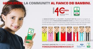 Durante i playoff e i playout è prevista una campagna di sensibilizzazione e di raccolta fondi in favore della Fondazione dell’ospedale pediatrico più grande d’Europa e, in particolare, per il progetto di assistenza alle famiglie dei piccoli pazienti ricoverati.